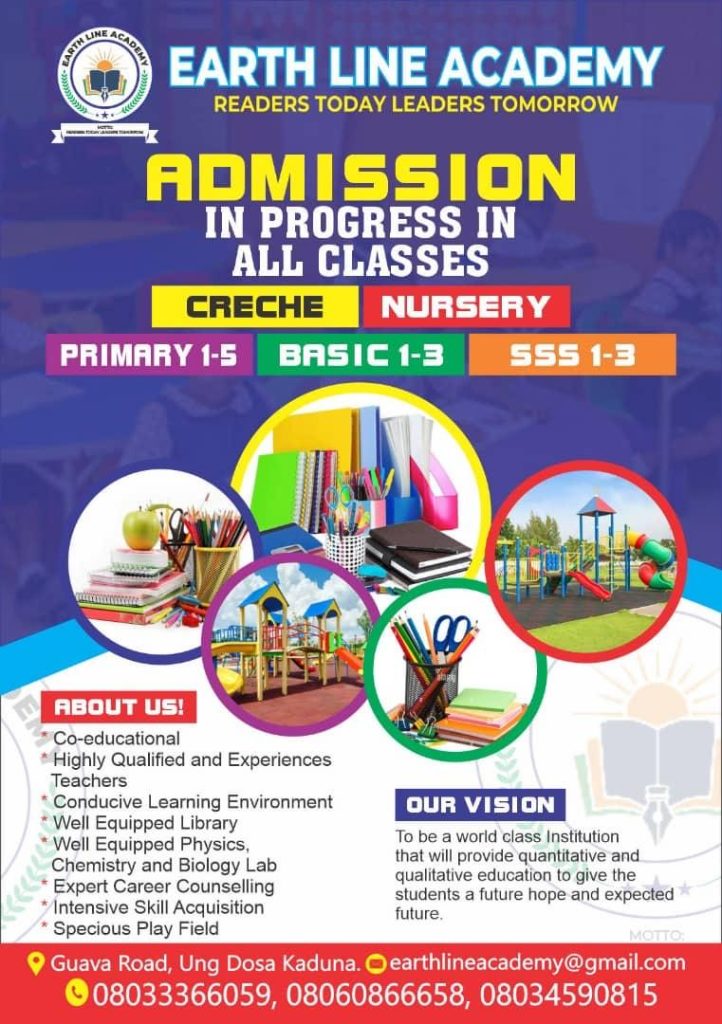 Return the completed form to Earth Line Academy, Guava Road, Ungwan Dosa, Kaduna.